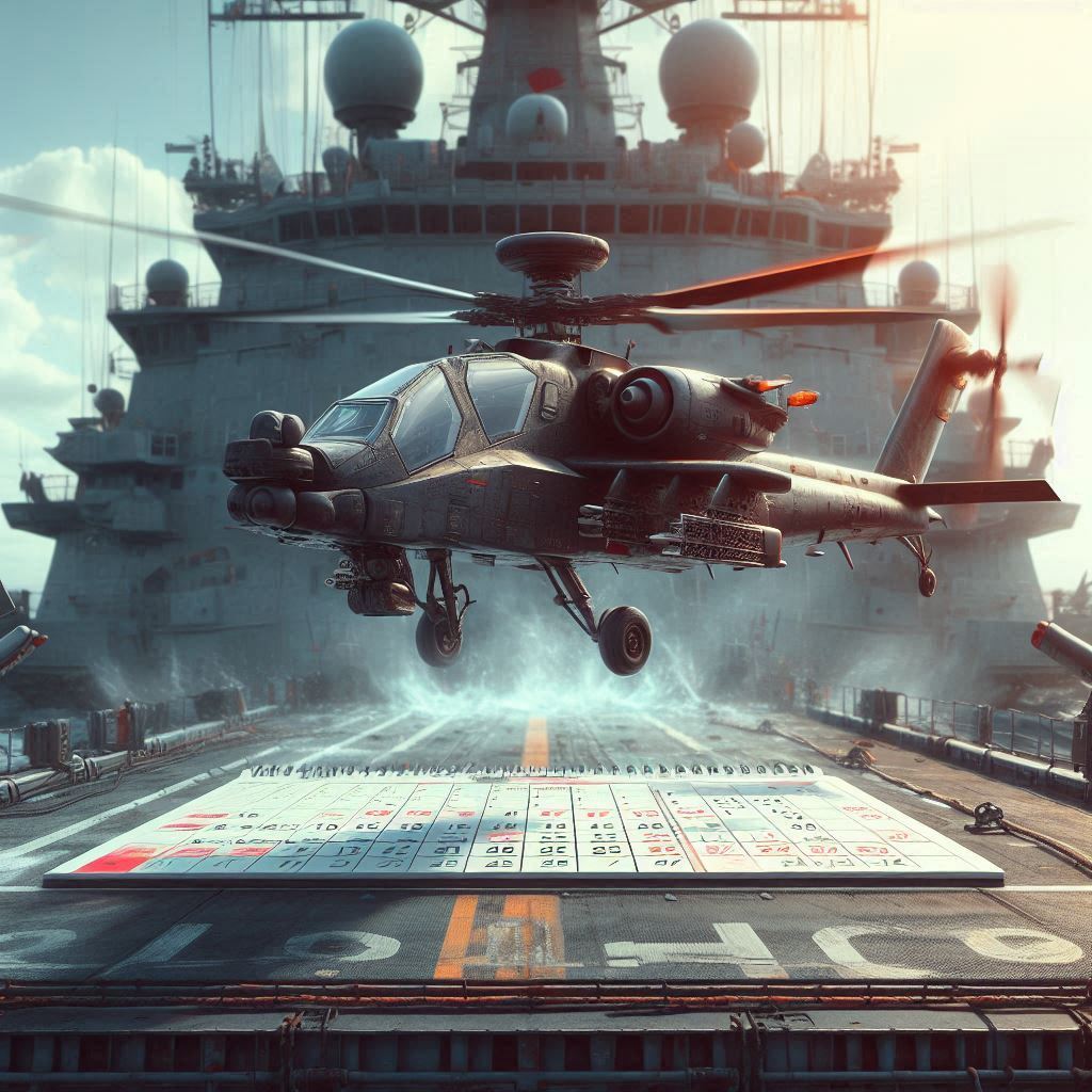 We walked from the Ward Room towards the ship’s deck, to start the helicopter engines and be ready to fly the Admiral back to the base. We reached the flight deck and manned the helicopter. We are supposed to start the helicopter engine and wait till the Admiral comes and sits on the passenger seat. Then, we are supposed to engage the helicopter rotors and take off for the base.